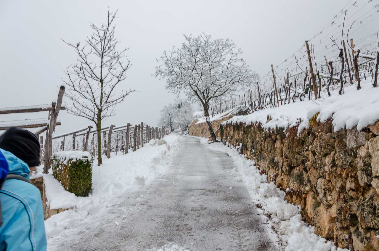 Problemlösung: Schusters Rappen! So kommen wir ganz unverhofft zu einer Winterwanderung von Tramin nach Kurtatsch und weiter nach Penon.